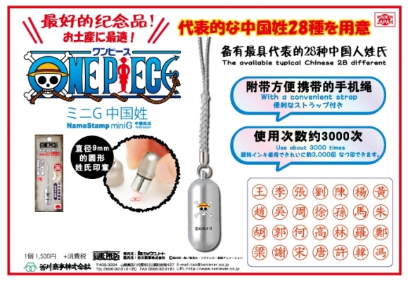 コミック・アニメで大人気「ワンピース」のネーム印。中国姓バージョンです。